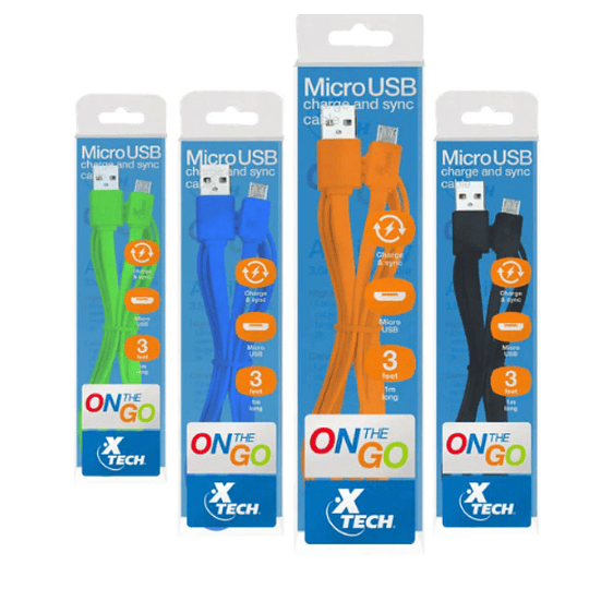 USB 2.0-5 V-2.4 A-1 m-plano-negro, blanco, azul, verde, naranja (paquete de 10) - Part number: XTG-231